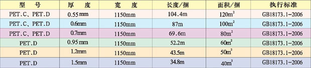 1.產(chǎn)品構(gòu)成 SY-PET聚脂高強復合防水卷材,選用聚乙烯含有PET材質(zhì)做防水芯層,兩表面用熱軋非織造布稱為PET.C防水卷材,兩表面用短纖針刺非織造布做增強層稱為PET.D防水卷材(兩種卷材以下簡稱PET防水卷材) 2.產(chǎn)品特點 a. PET防水卷材最大的特點就是PET材質(zhì)夾在中間,大大提高了產(chǎn)品的機械強度,而且質(zhì)地柔軟并附有彈性,隨服性好,易施工。 b. PET防水卷材上下非織造布纖維呈無規(guī)則立體交叉結(jié)構(gòu),形成多孔狀表面,可用多種膠粘劑粘接,均可收到良好的粘接效果。 c. PET防水卷材與本公司生產(chǎn)的SY-JF-1高效膠粉或SY-JZJ-1膠粘劑、SY -JF-2接縫密封膠粉配套施工,粘接剝離強度可達到規(guī)范要求的15N/cm. d. PET防水卷材用水泥膠粘劑粘結(jié)時,水泥膠粘劑進入卷材的表面隙中,隨水泥固化為一體,故粘接永久牢固。 e. 施工后的PET防水卷材表面可直接進行裝飾、裝修(如貼瓷磚,鑲地板磚等) f. 對粘貼PET防水卷材的水泥基面含水率沒有特殊要求,只要沒有明水即可施工,且保證工程質(zhì)量。 g. 該產(chǎn)品無害、無毒、無污染,屬綠色環(huán)保型產(chǎn)品。 3.使用范圍 該產(chǎn)品適用于建筑、水利、環(huán)保和交通等領(lǐng)域的防水、防滲、防潮、隔汽和防污染工程。如建筑工程:屋面、地下、廁浴間等;水利工程:水庫、堤壩、圍堰、渠道等;環(huán)保工程:垃圾填埋場、污水處理廠、冶金化工污染物堆放場等;交通工程:橋梁、地鐵、公路、鐵路、洞體、渠道等;園林工程:屋頂花園、種植屋面、園林小品等。 4.產(chǎn)品規(guī)格(依據(jù)工程需要和國家有關(guān)規(guī)定在下列規(guī)格中選擇,如有特殊要求另與我公司商定)