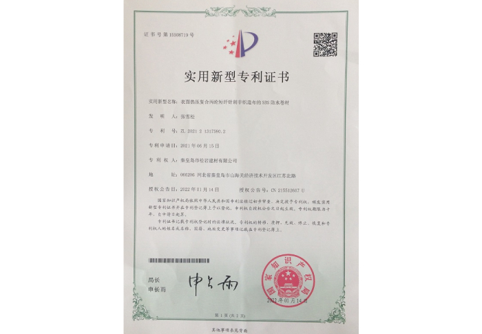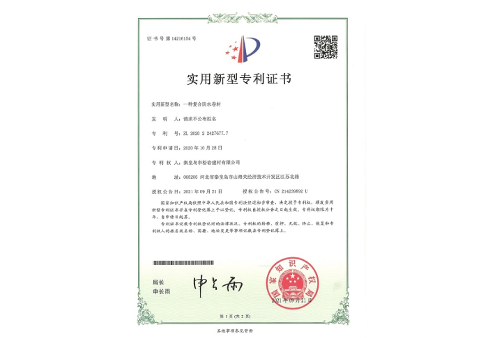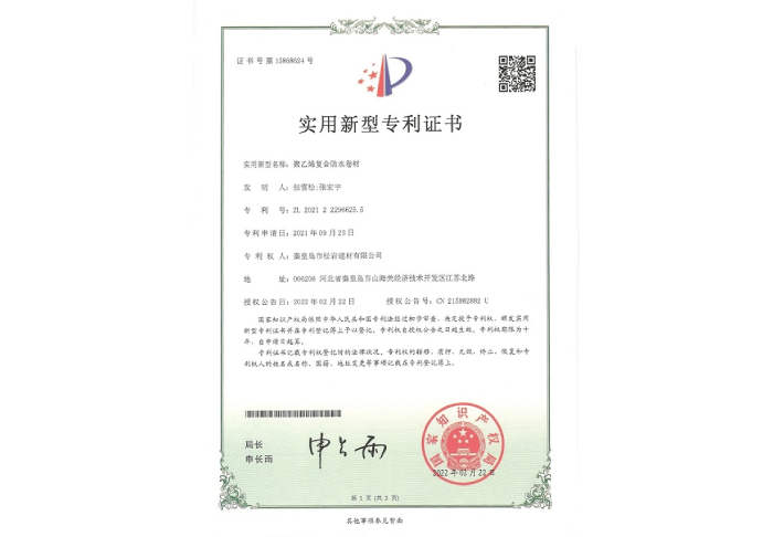 聚乙烯復(fù)合防水卷材專利證書
